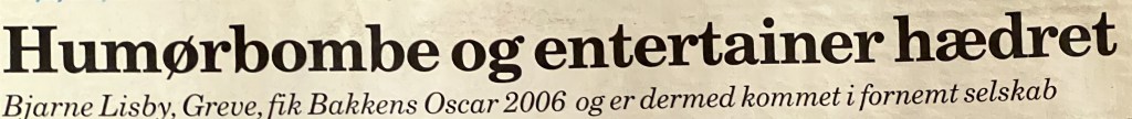 I 2006 opnåede jeg at modtage Bakkens ultimative anerkendelse, Bakkens Oscar.
